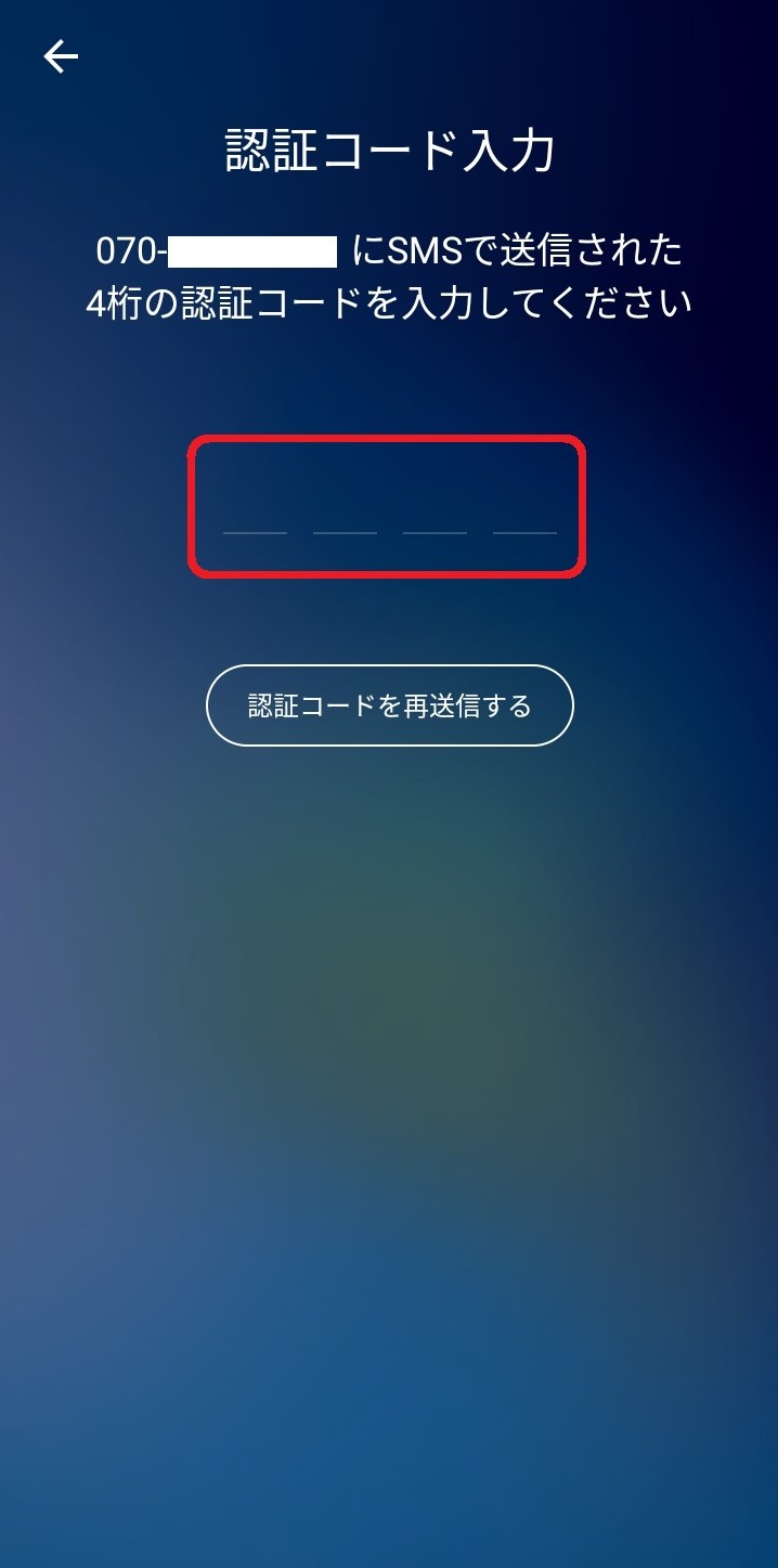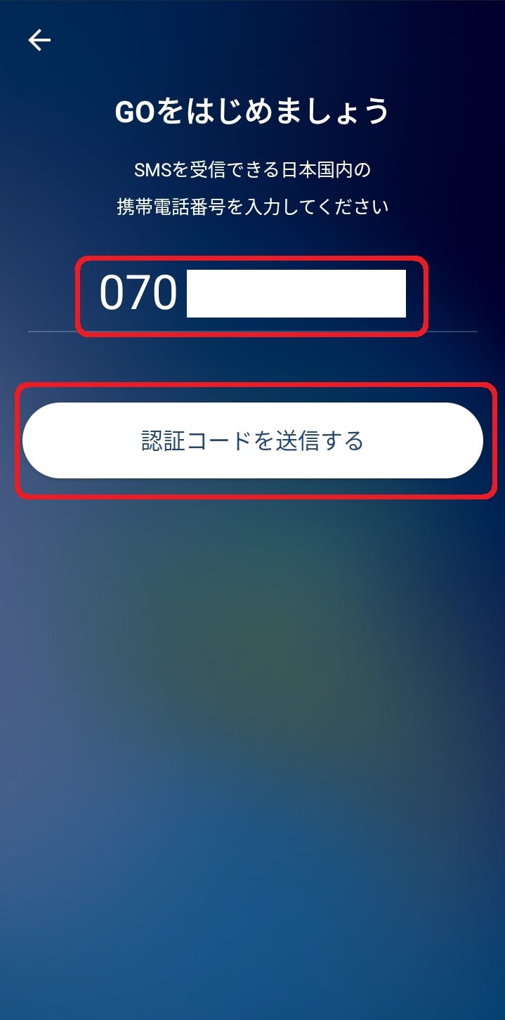 B電話番号を入力し、「認証コードを送信する」をタップ
