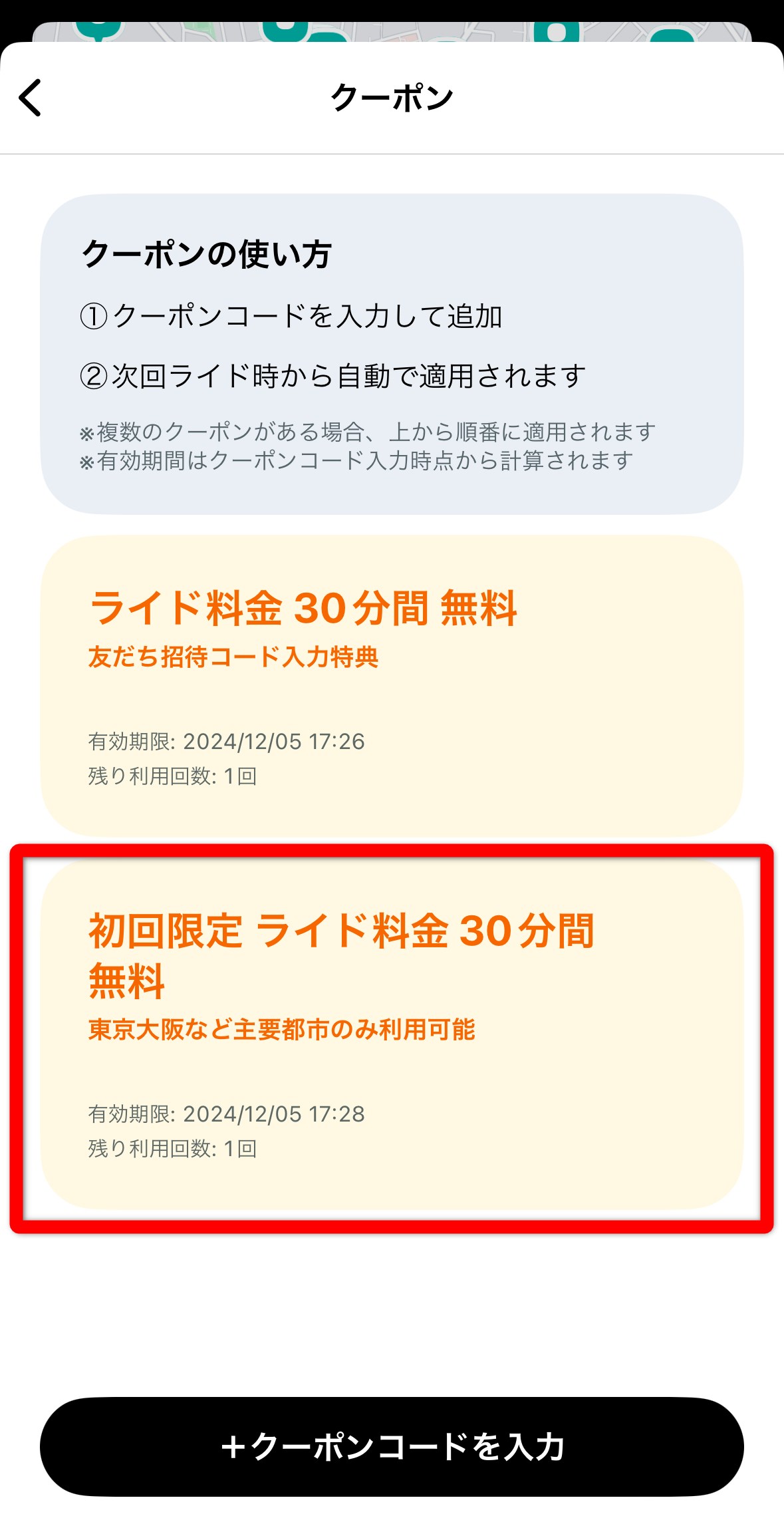 ※クーポンは利用時に自動的に適用されます。